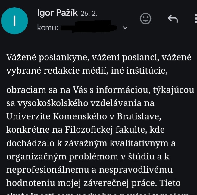 Rektor Univerzity Komenského. (2025, 27. február). E-mail – reakcia na nedostatky štúdia.