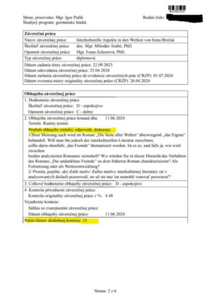 Priloha: Ukážka kvalitného oponentského posudku príslušnej katedry. Jazyková a grafická úprava predstavujú 10 bodov zo 40 možných, čiže tvoria až 25 % celkového hodnotenia