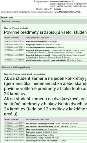 Akreditovaný študijný plán študijného magisterského programu Germánske štúdiá v nemeckom module (2022-2024)