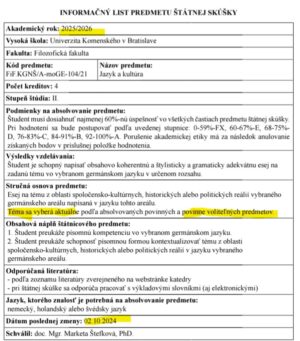 Informačný list štátnicového predmetu Jazyk a kultúra (2025/2026)