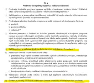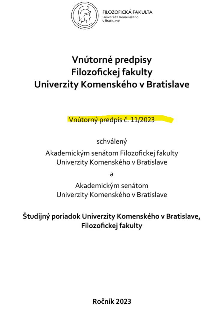 Študijný poriadok FiF UK, čl. 4 ods. 8:
